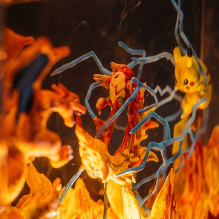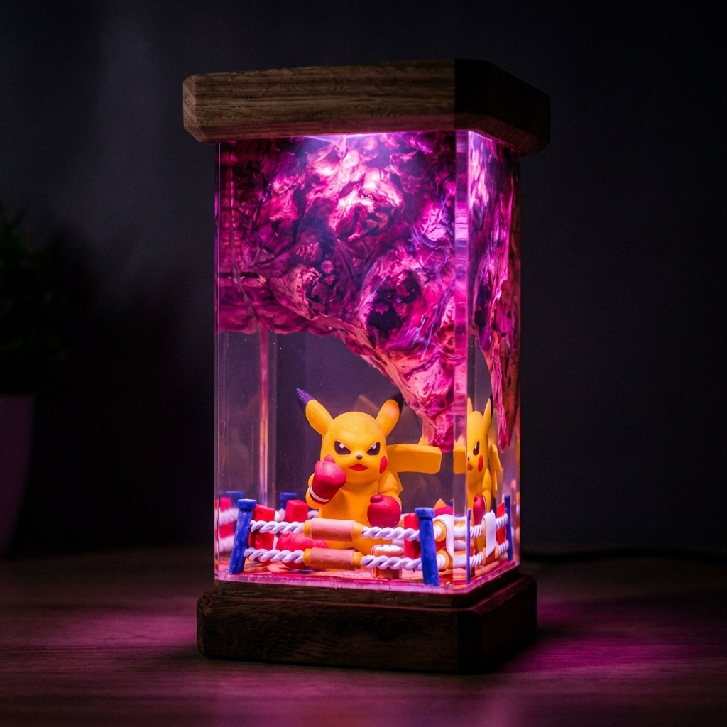Each piece is a miniature diorama — hand-painted figures, detailed landscapes, and iconic moments from the worlds you grew up with, sealed inside crystal-clear resin with a built-in LED base. Turn the light on and the whole scene glows from within. Small batch. No shortcuts. Crafted for the trainers.